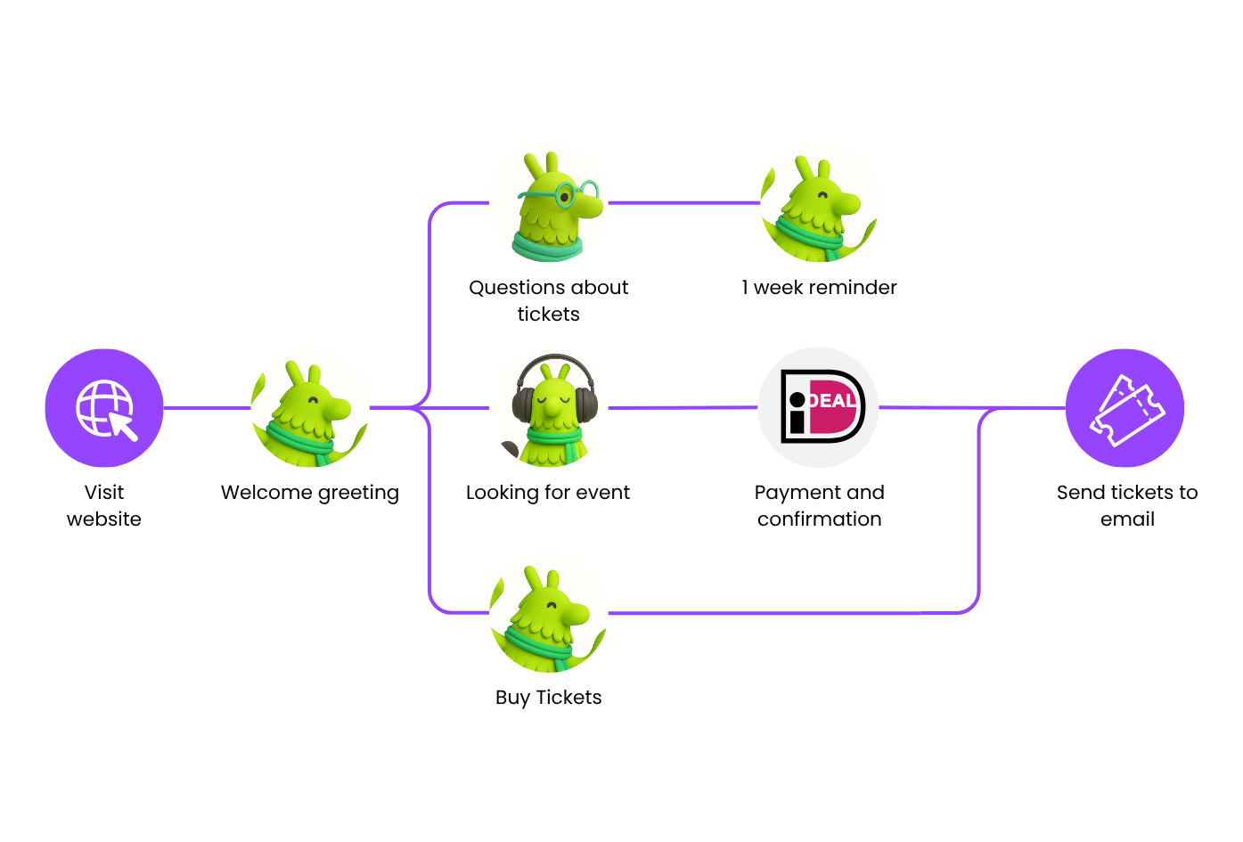 Place your mascot on screens in unmanned stores or events—visitors can chat live for support, info, or a touch of magic.