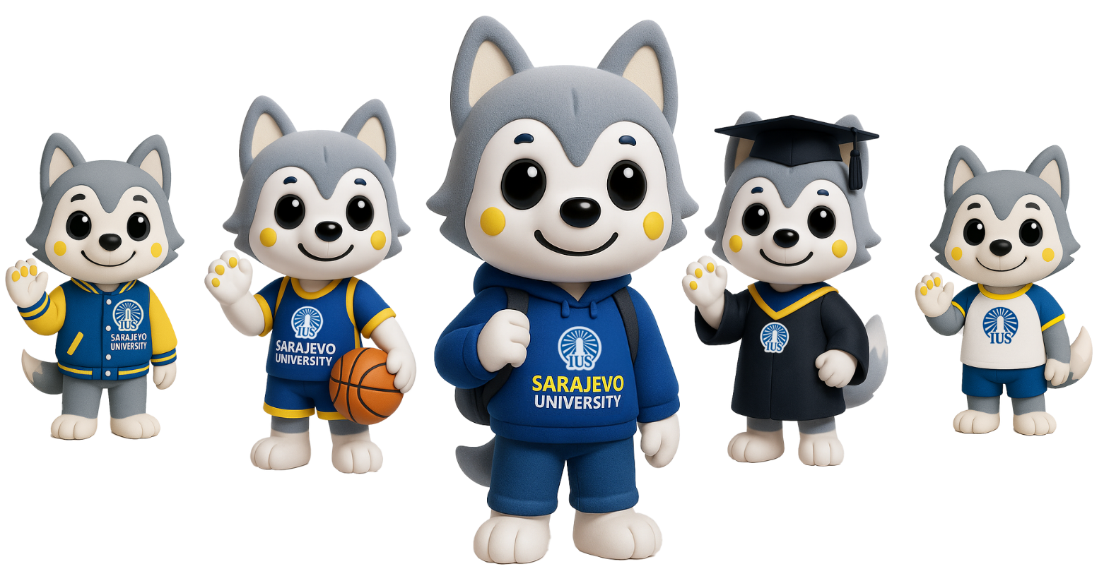 Woof is a 3D-animated gray and white wolf cub who proudly represents the "IUS Wolves". He is designed to be a sporty, energetic, and encouraging digital buddy. Depending on the context or season, Woof can seamlessly switch his look—from his classic "Student Woof" t-shirt to a "Varsity" jacket, a basketball uniform, or even formal graduation attire. He loves helping students stay motivated, whether it's giving study tips or chatting with new arrivals.