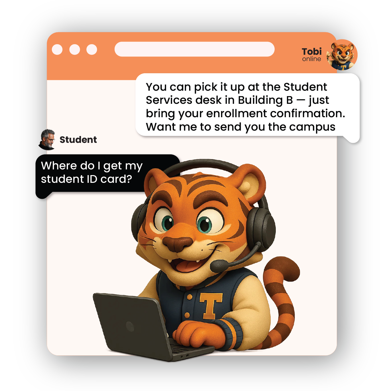 Your mascot becomes a friendly guide, answering student’s questions and helping them feel at home from day one